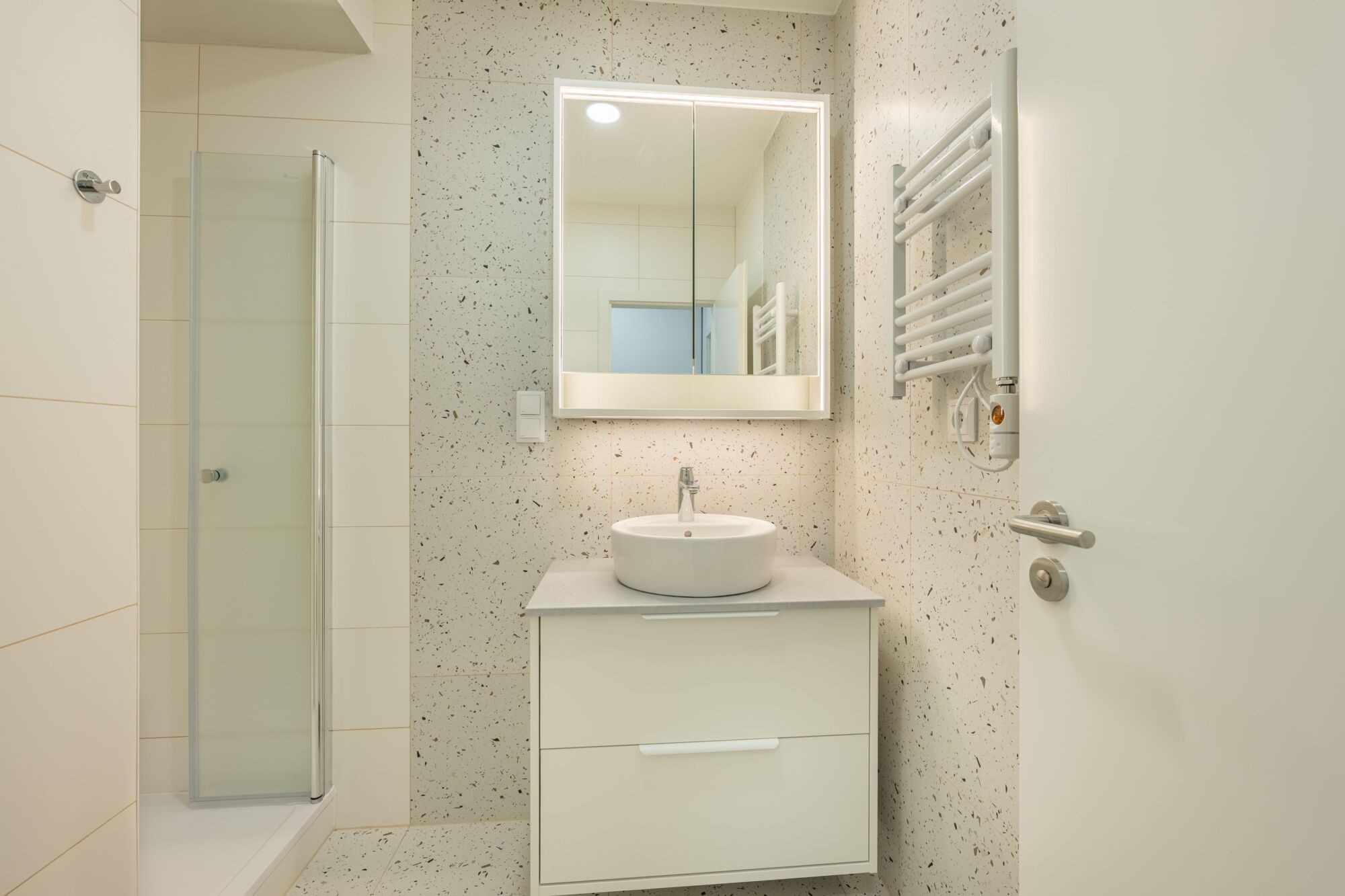 Díky poloze v posledním patře je v bytě klid, ideální prostředí pro práci z domova – byt ocení i páry, které si mohou jeden z pokojů přizpůsobit jako pracovnu.