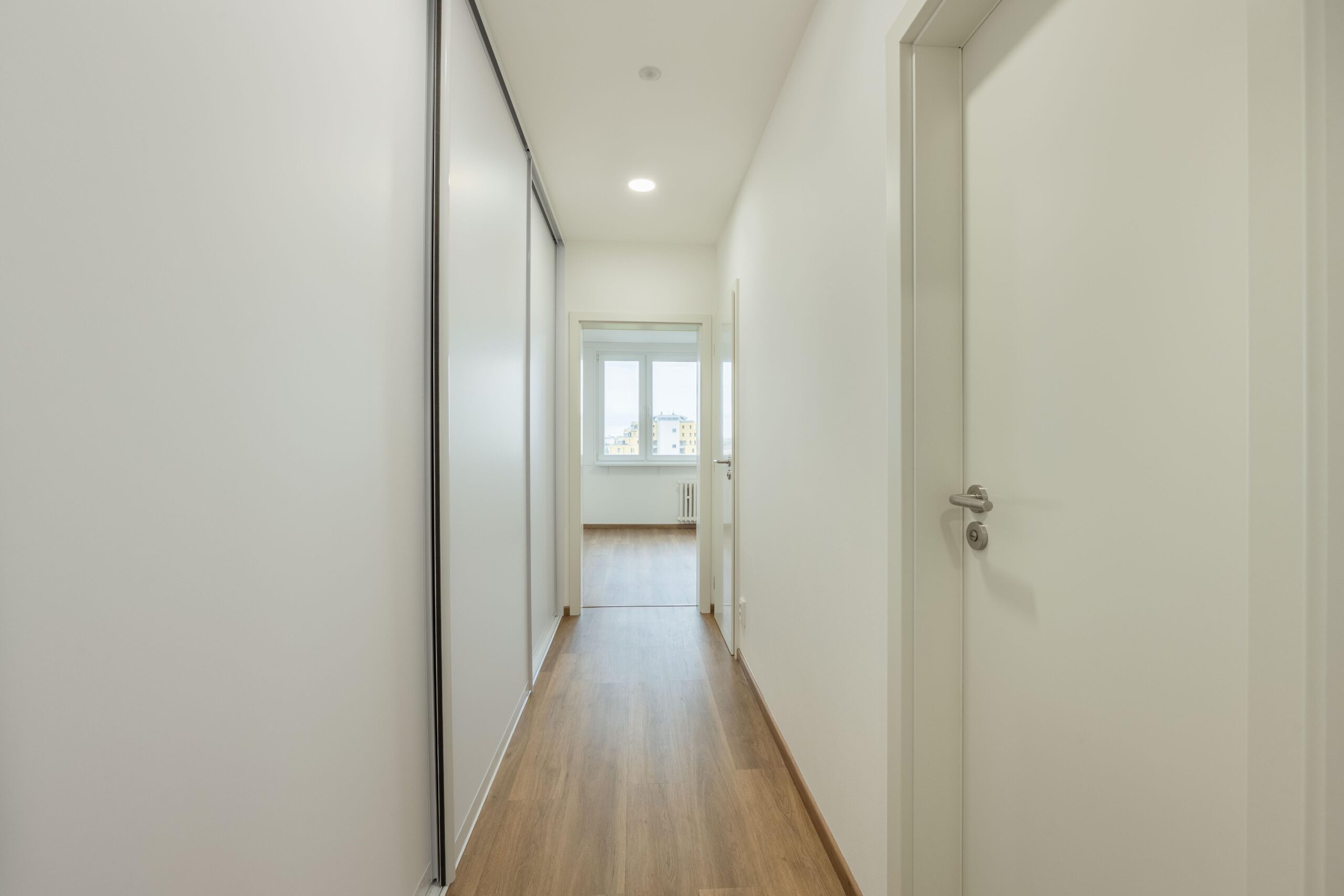 Jedná se o byt, který právě prošel kompletní rekonstrukcí. Má dispozici 3+1 o užitné ploše 69,2 m², situovaný ve 13. patře panelového domu s dvěma výtahy, v klidné lokalitě Zahradní Město – Praha 10, ulice Narcisová.