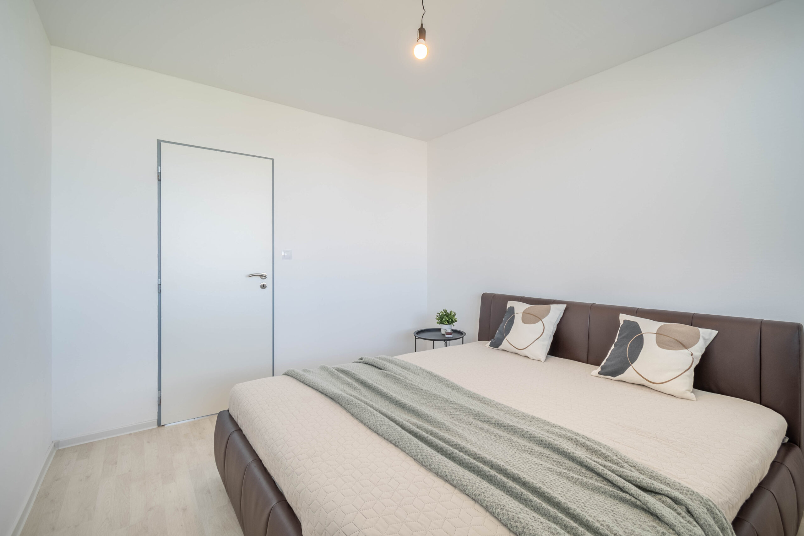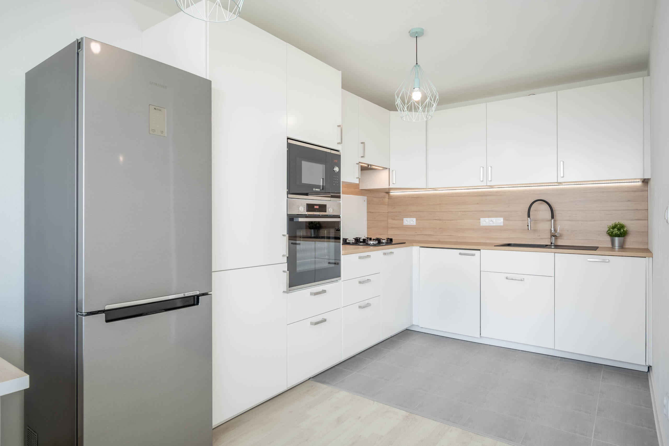 V bytě je k dispozici kuchyňská linka s plynovým sporákem, troubou a digestoří, mikrovlnkou, lednička a myčka a pračka (je v kuchyňské lince). V první ložnici je manželská postel (180x200 cm) a v druhém pokoji jednolůžko (140x200 cm). V obývací části a pokojích jsou laminátové podlahy, v koupelně a na toaletě vinyl a v předsíni a komoře dlažba.