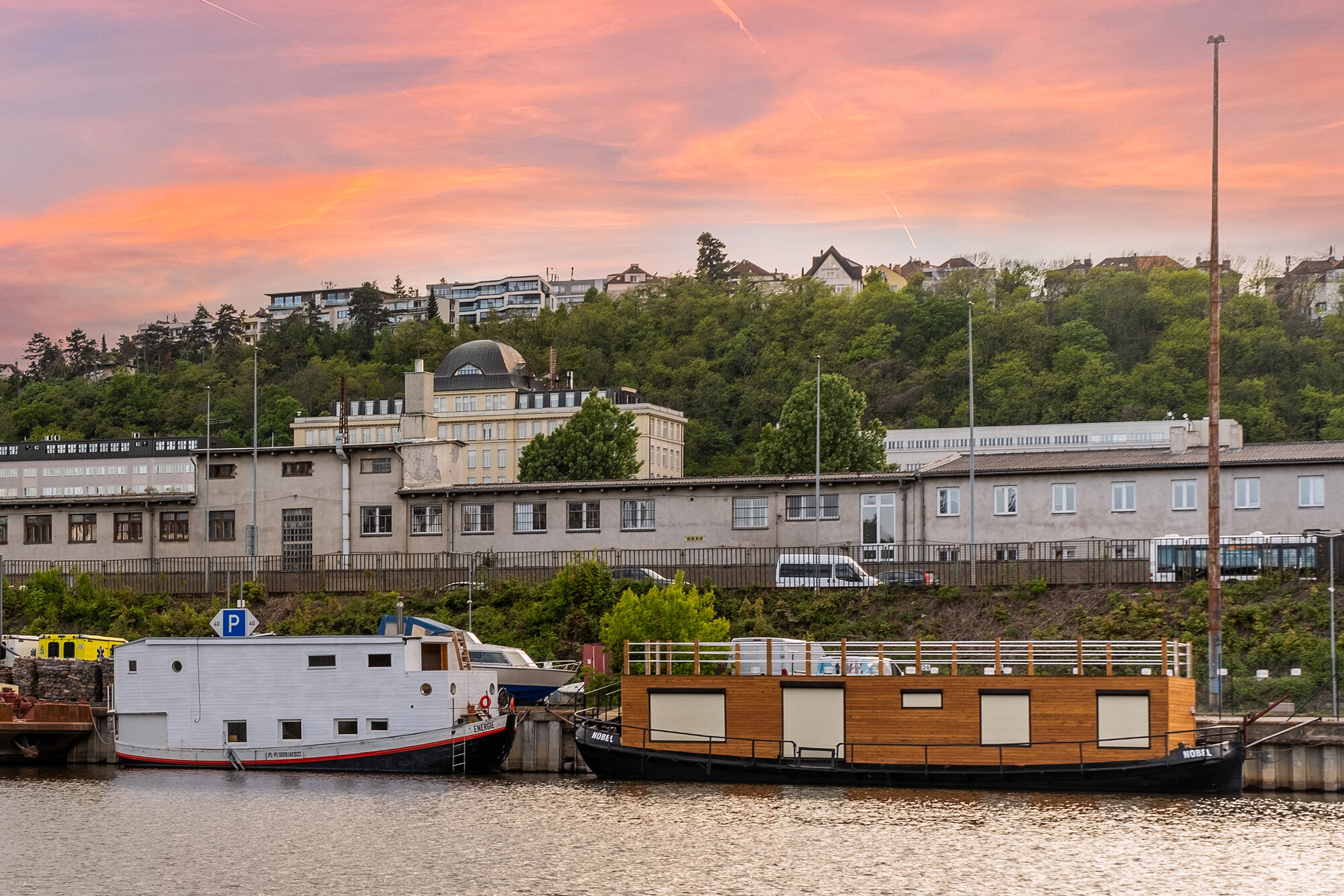 Pak mám pro vás jeden zbrusu nový hausbót, který kotví v Praze na Smíchově.